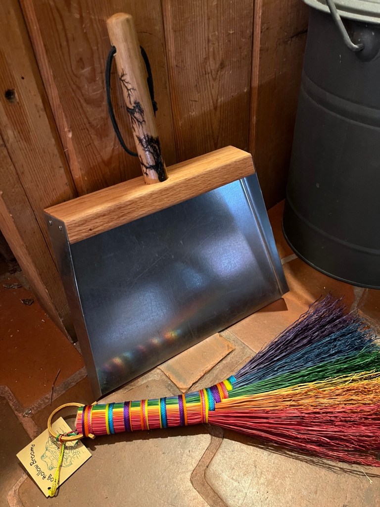 A beautiful Dust Pan featuring a lightning burned handle. Paired with a rainbow Turkey Wing Whisk it makes a very functional duo!
